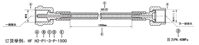 2、For example,One end is quick fitting of connecting thread is M16,The other is direct to connect with pressure gauge of thread is M14×1.5,Now Dia 3mm,the length ofhose assembly is 1.5M,The model of this is:HFH2-P1-3-P-1.5.